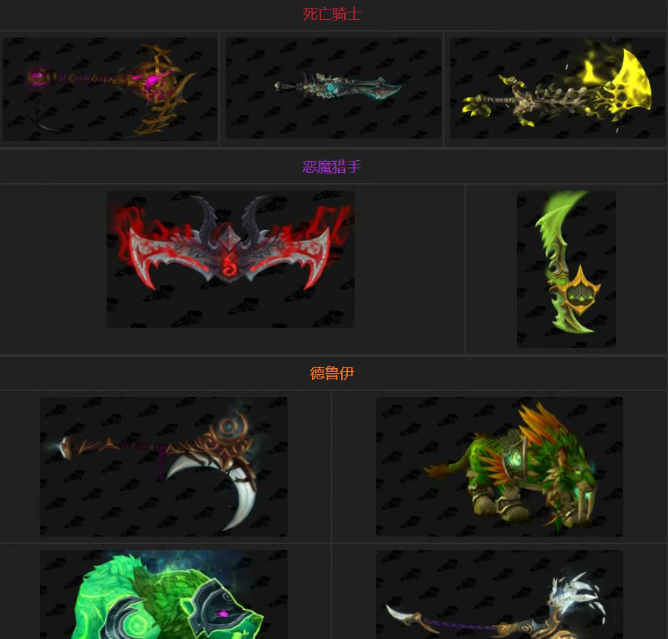 全职业的奖励预览都在下面,暴雪在之前修改了能量的平衡任务的规则,现在只需要做完一个职业即可解锁所有职业的能量的平衡外观,所以还是非常值得做的,比较好的外观是德鲁伊的果冻熊、惩戒骑的神器外观以及恶魔术的外观