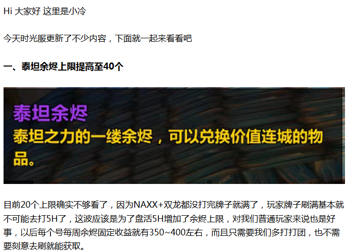【魔兽世界】时光服三大利好更新!每个角色每周被动收入400G,团本收入大增