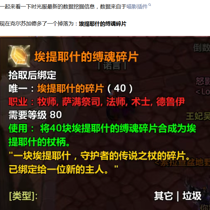 【魔兽世界】时光服最新数据挖掘!橙杖或为直接掉落,不用再包片了