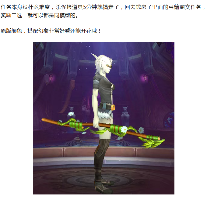 老玩家一定还记得猎人的史诗弓/杖任务,里面的杖是会开花的而开了TBC之后就绝版了。