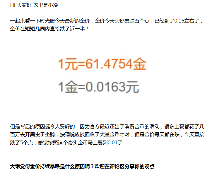 【魔兽世界】时光服4月21日最新金价!一天跌了5个点,下跌的原因令人费解