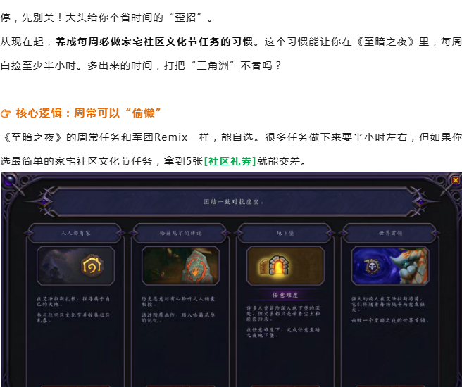 魔兽世界:养这习惯!至暗之夜上线后,每个号每周省半小时周常时间!