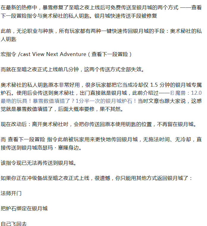 魔兽:利好玩家立马修复!奥术秘社和回城宏热修失效!法师重就业!