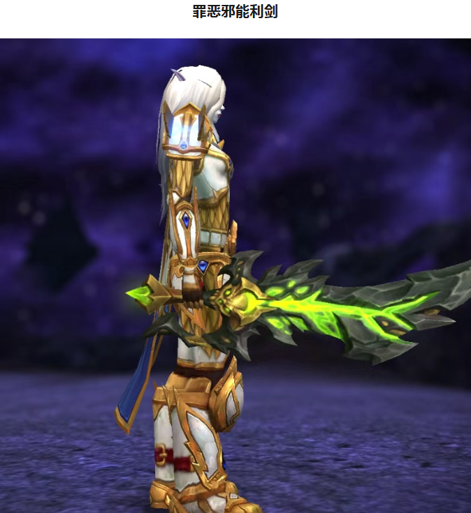 今天来军团再临幻境新生分享如何获得“罪恶邪能军械”,一次行解锁下面四款武器外观: