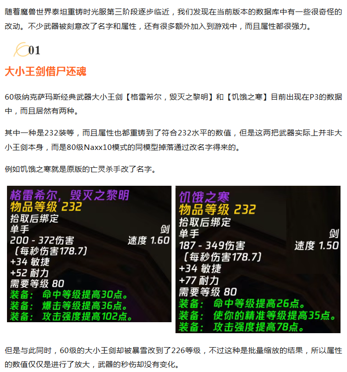 魔兽时光服P3数据挖掘:大小王剑借尸还魂,还有大量强力武器额外加入!