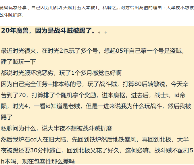 魔兽时光服:玩家因为玩战斗贼被踢,理由很离谱