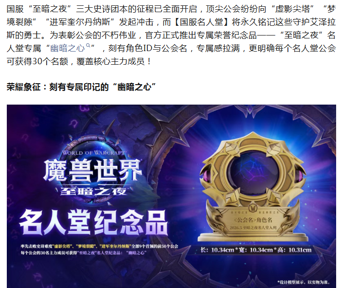 魔兽:打团本可得刻有角色ID的幽暗之心!名人堂公会每个公会有30个名额!