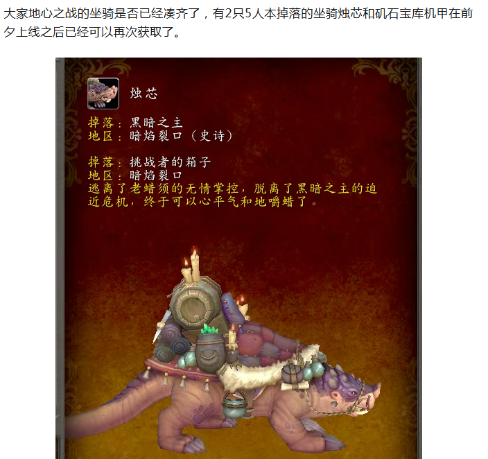 魔兽世界这两只地心之战的坐骑每天都可以刷不要错过