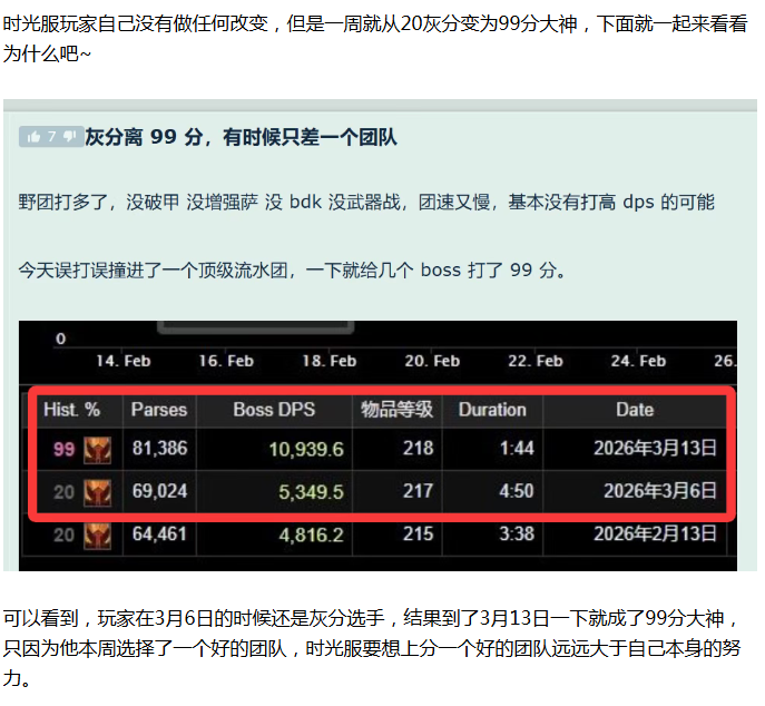 【魔兽世界】时光服玩家1周就从WCL20分变为99分大神,只因为他干了这件事