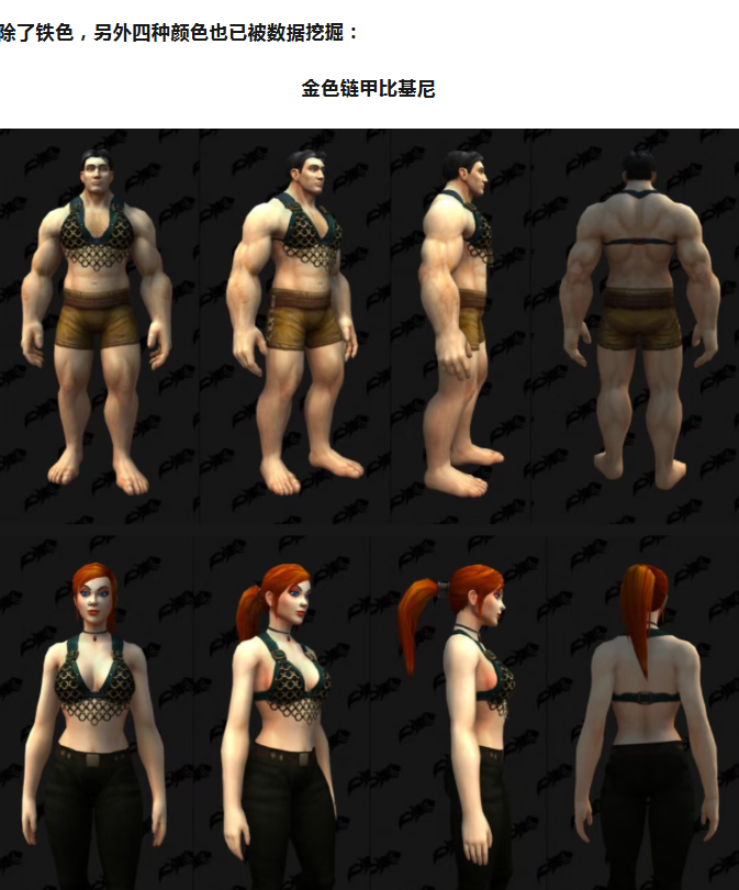 在11.2.7补丁中,暴雪为四款链甲比基尼加入了物品数据