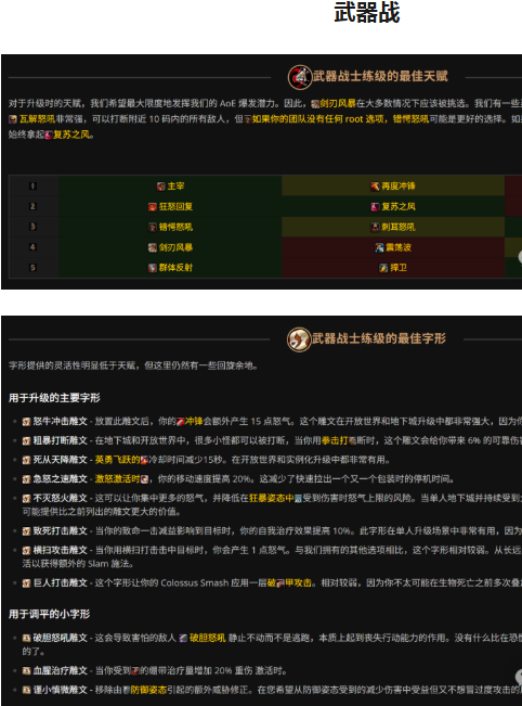 这篇文章带来战士三系练级天赋 & 雕文推荐!(来源Wowhead)
