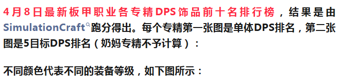 4月8日全职业专精DPS饰品Top10排行榜-板甲篇