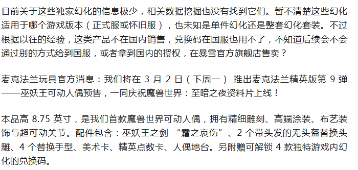 魔兽:最新巫妖王可动手办来了!购买手办还送四款独特游戏幻化!