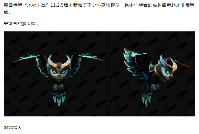 魔兽世界:新版本大量战斗宠物曝光,守望者猫头鹰!