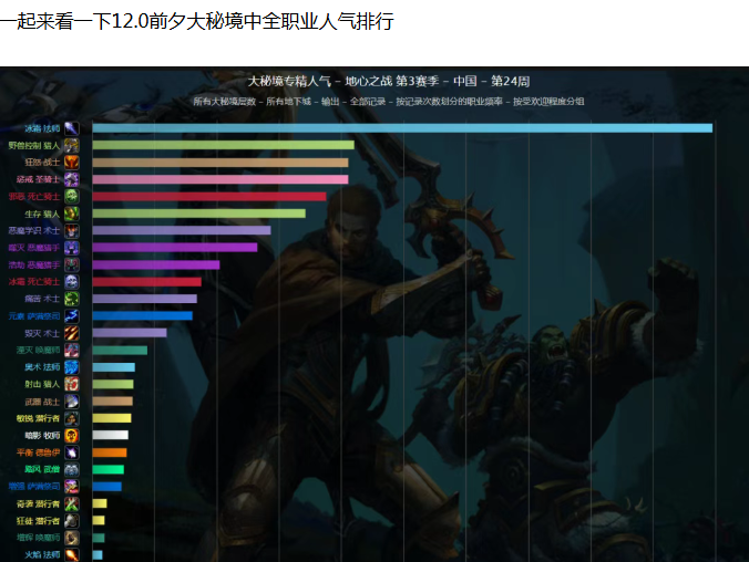 而且冰法的伤害也不低,在12.0的评级也是S级,这下人人都是法神了,非常建议大家在12.0玩的一个职业,简单而且伤害高!