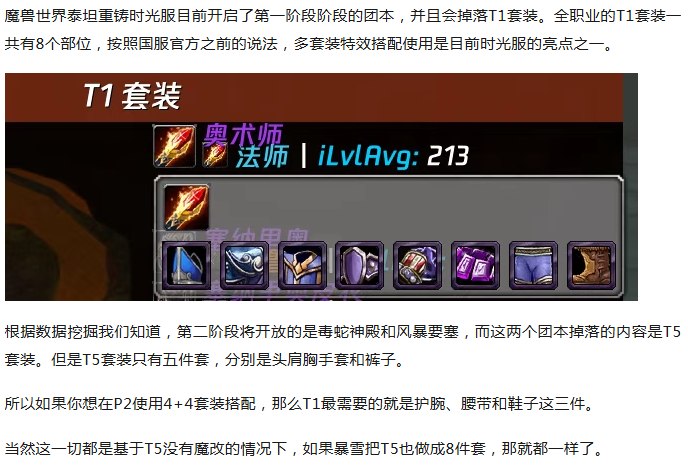 魔兽时光服:目前T1套装最保值的几个部分!到P2都换不掉