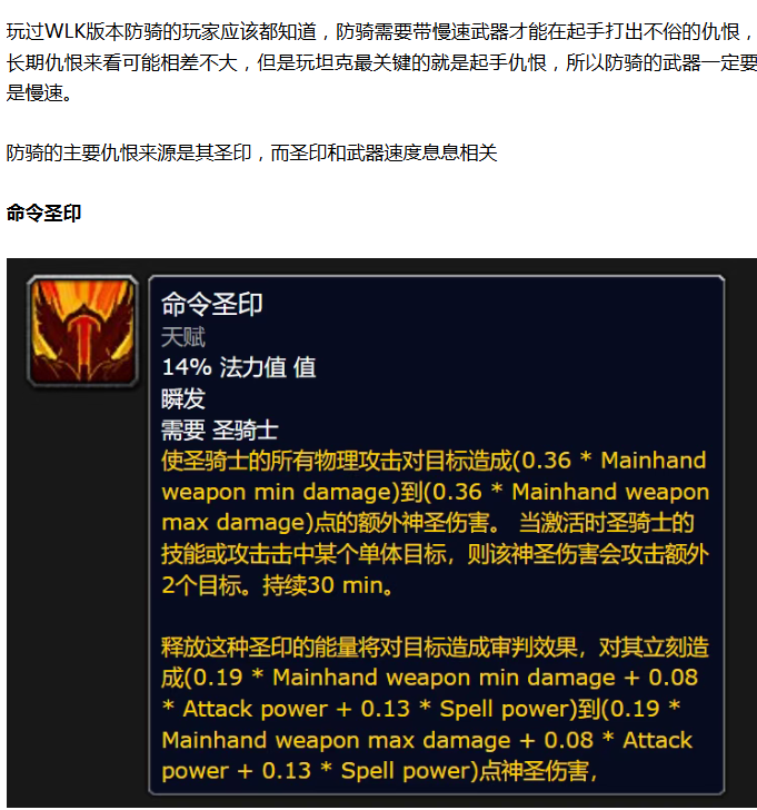 命令圣印简单粗暴,所有的伤害来源都和武器的白字伤害有关,也就是慢速武器的伤害会更优,越慢的武器白字伤害越高。