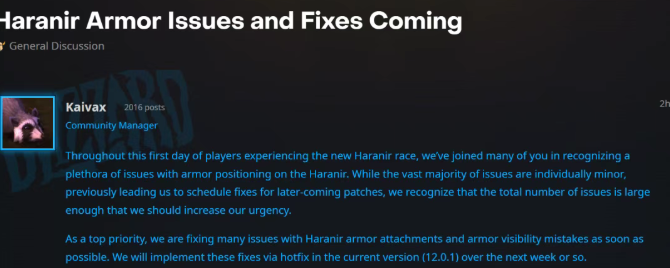 魔兽:暴雪蓝贴!新种族哈籁尼尔的幻化BUG将在一周内修复!