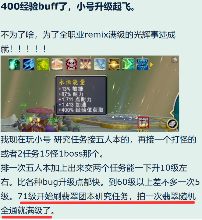 【魔兽世界】最肝玩家!玩家获取400%经验加成,小号一个副本升10级