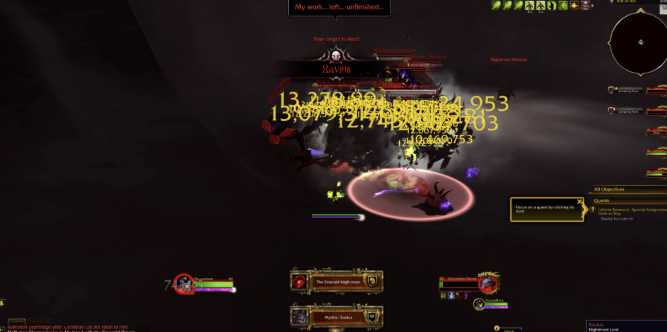 我们轻松单刷了 翡翠梦魇史诗难度,甚至萨维斯不到一分钟就倒下了。