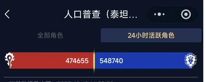 我们来看一下魔兽世界泰坦重铸时光服最新的人口普查情况目前截至今天下午15点,整个时光服的总24小时活跃人口,已经正式突破100万!