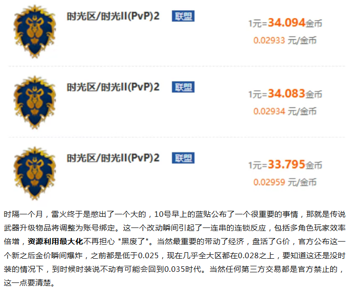 魔兽世界:雷火一个蓝贴,时光服G价一夜之间暴涨