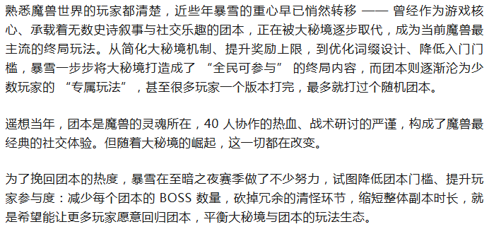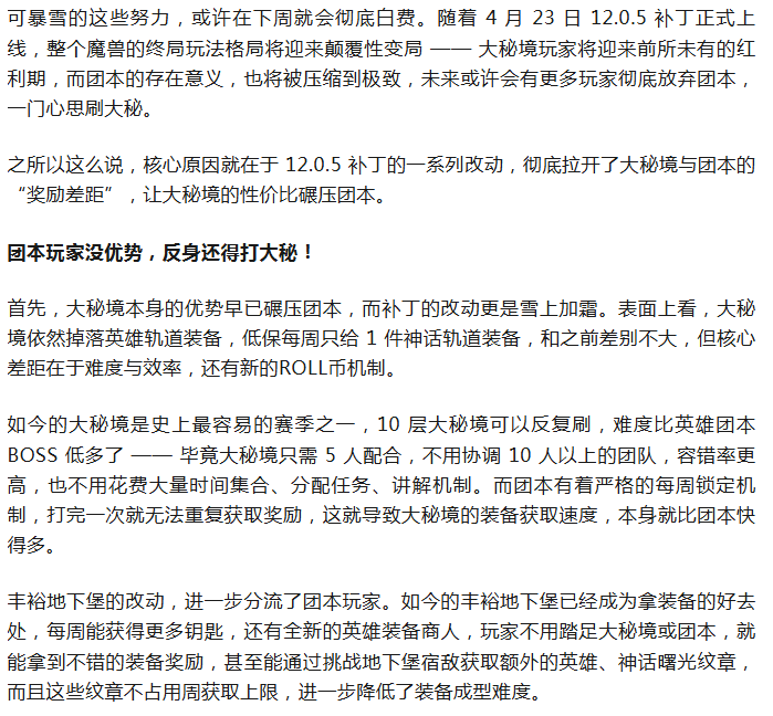魔兽:暴雪真的算过账?大秘玩家下周开始红利吃满,更没人打团本了