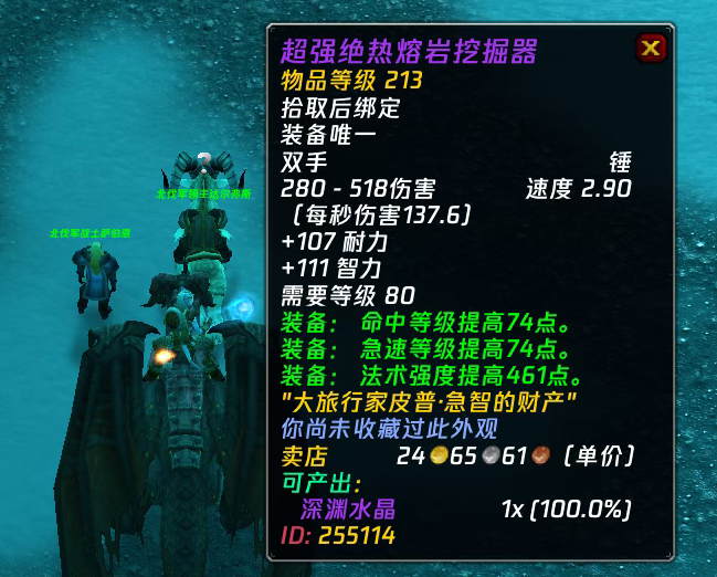 魔兽世界泰坦重铸时光服熔火之心9号Boss管理者埃克索图斯掉落的【超强绝热熔岩挖掘起】被暴雪设计为带急速命中的法系双手锤。因为属性加成还可以不少玩家都买来用了。