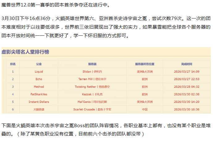 魔兽世界:火鍋英雄亚洲首杀史诗奥蕾莉亚!只有一个职业被抛弃