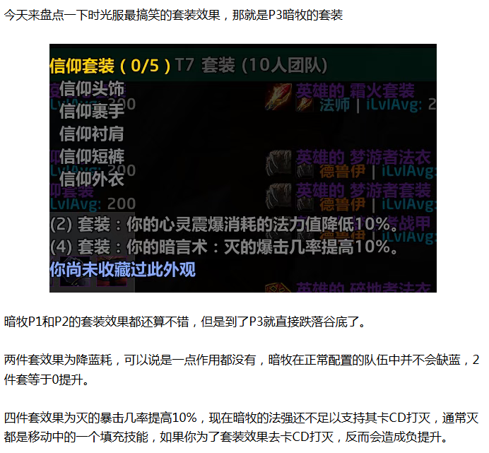 【魔兽世界】时光服P3最搞笑的职业套装!4件套穿上等于负提升