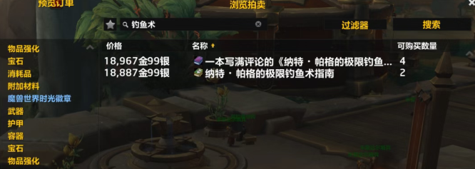 拍卖行搜索“钓鱼术”,购买两本并学习。