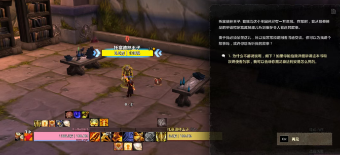 在中心花园与托塞德林王子对话,获取隐藏提示。