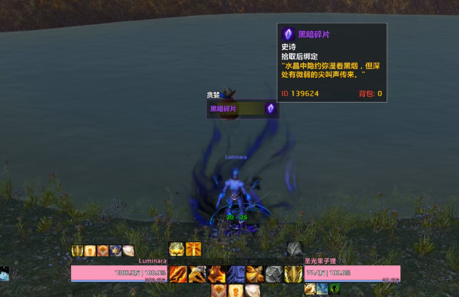 使用护符召唤,与其对话后在湖边钓鱼,直到获得“黑暗碎片”。