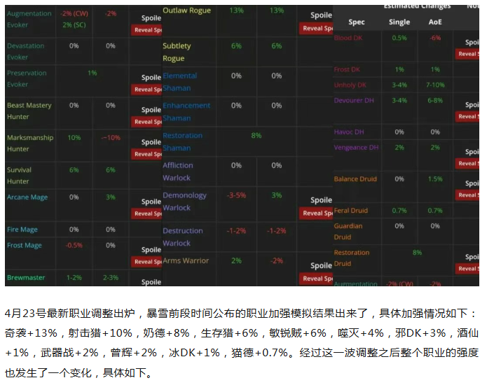 魔兽世界:4月23号最新职业调整,一个职业加强了13%,成功反超恶魔术