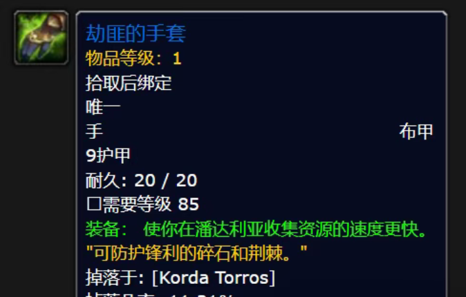一起来看一下熊猫人之谜版本有采集专业的玩家必刷的一个装备