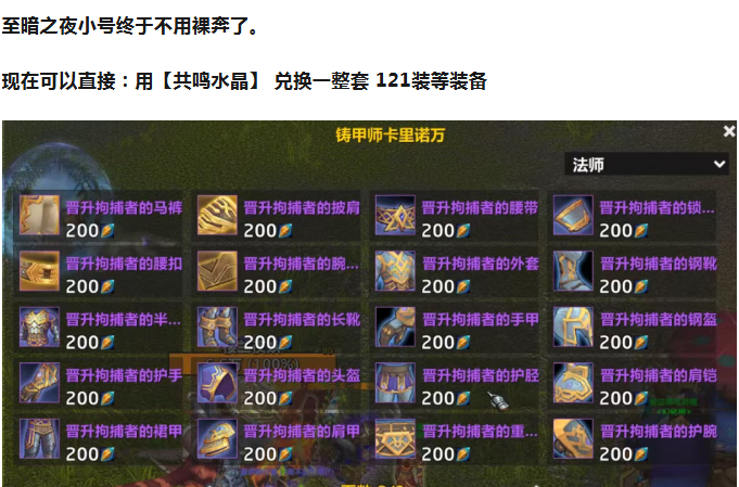 魔兽世界小号速拿121装等,共鸣水晶就能兑换!