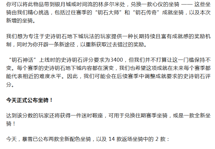 魔兽:官宣!本周3400分玩家可兑换两个新坐骑及14款绝版返场坐骑!