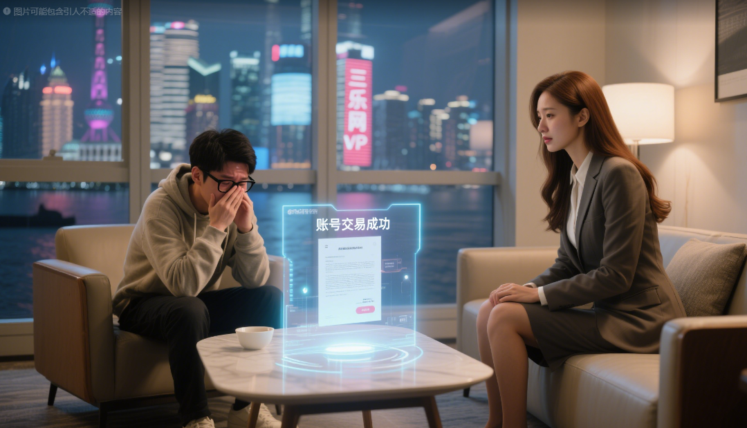 三乐网 VIP 接待室的智能茶几上划开全息合同,窗外黄浦江的霓虹正透过落地窗将 "账号交易成功" 的提示映成流动的光斑。对面沙发上,穿旧卫衣的林深突然捂住脸,指缝间漏出的哽咽声让整个房间的空气都震颤起来。
