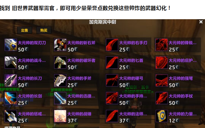 🐼 熊猫人怀旧服:荣誉点数,只能兑换本职业可用武器