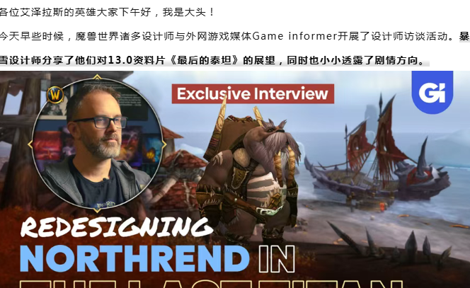 魔兽世界:设计师访谈划重点!诺森德重置+挖泰坦旧坑,13.0剧情方向确认