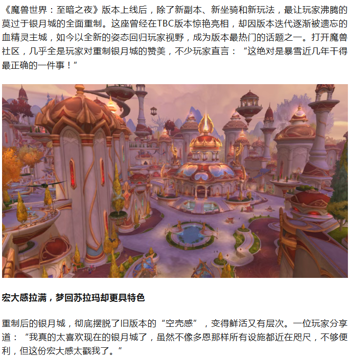 目前魔兽:玩家热议!银月城重制是暴雪干的最正确的一件事!太美了!