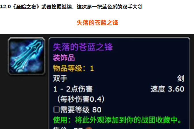 《至暗之夜》武器挖掘!苍蓝流光双手大剑来了!