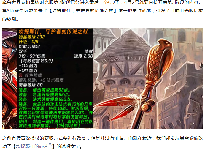 实锤!时光服橙杖任务变动,暴雪已对任务物品进行修改