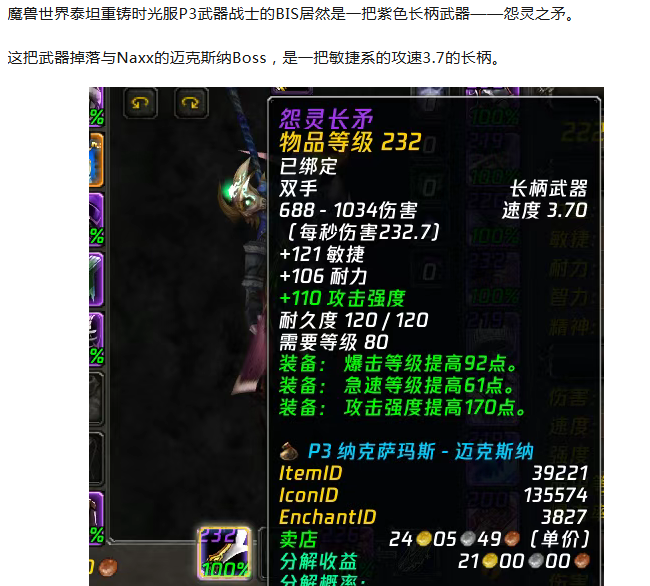 魔兽时光服:P3战士的BIS居然是一把紫色长柄武器!