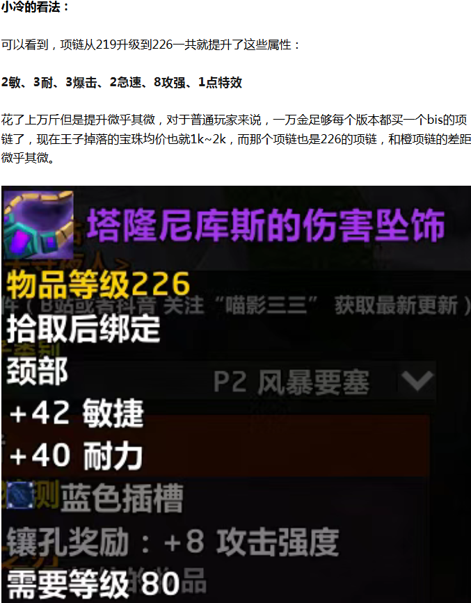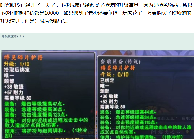 【魔兽世界】时光服玩家花上万金升级了橙项链后傻眼了,万金提升了10点秒伤