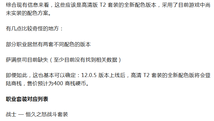 魔兽:商栈即将上架全职业新T2套装!一套400,配色奇葩!