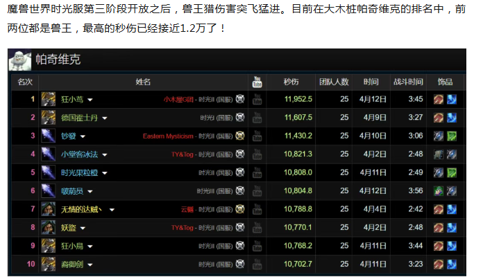 魔兽时光服:兽王猎突发神勇,DPS直接上天了!