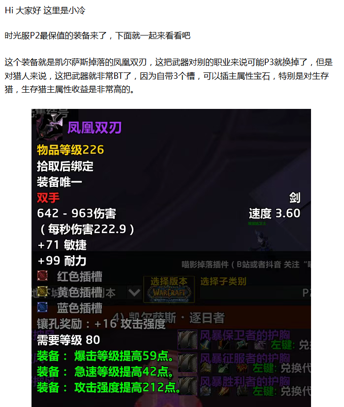 【魔兽世界】时光服P2最保值的装备!这个职业可直接带到P4不用换