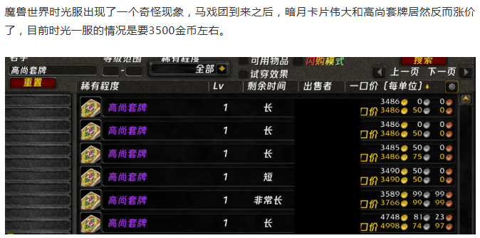 魔兽时光服:伟大价格大涨!