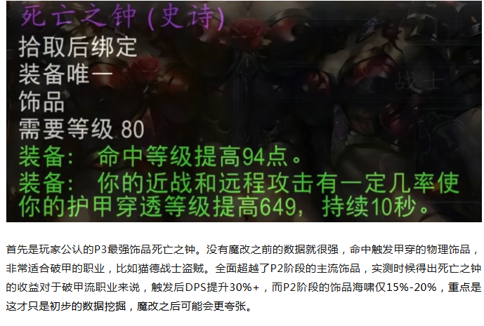 魔兽世界:时光服P3最强饰品曝光,六分仪和伟大即将迎来暴跌